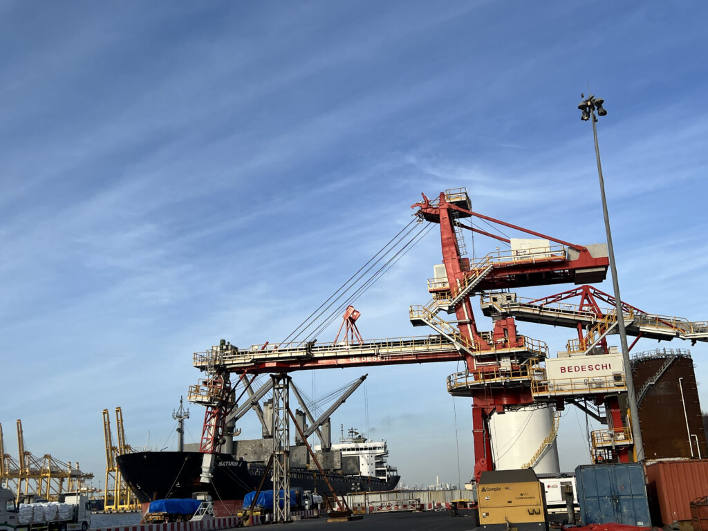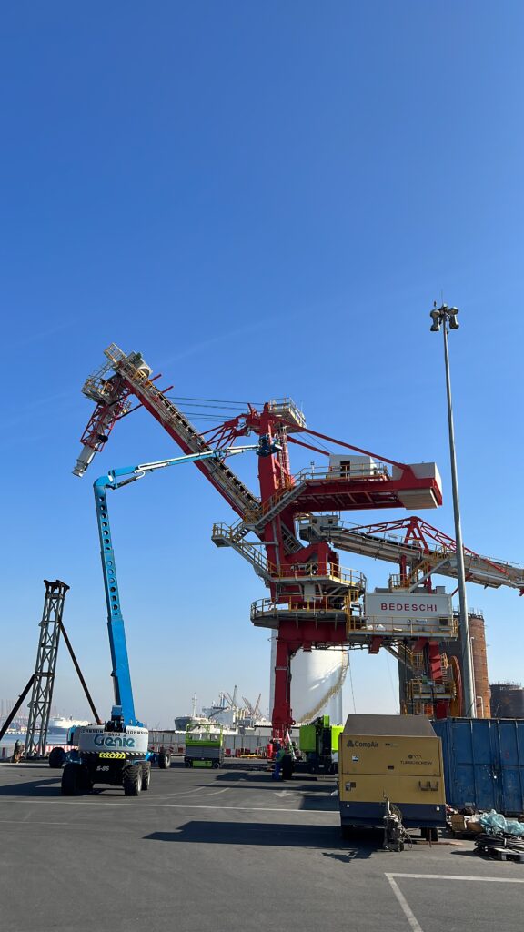 Bedeschi 1200 t/h shiploader at the final installation stages ready to be shipped to its final destination.