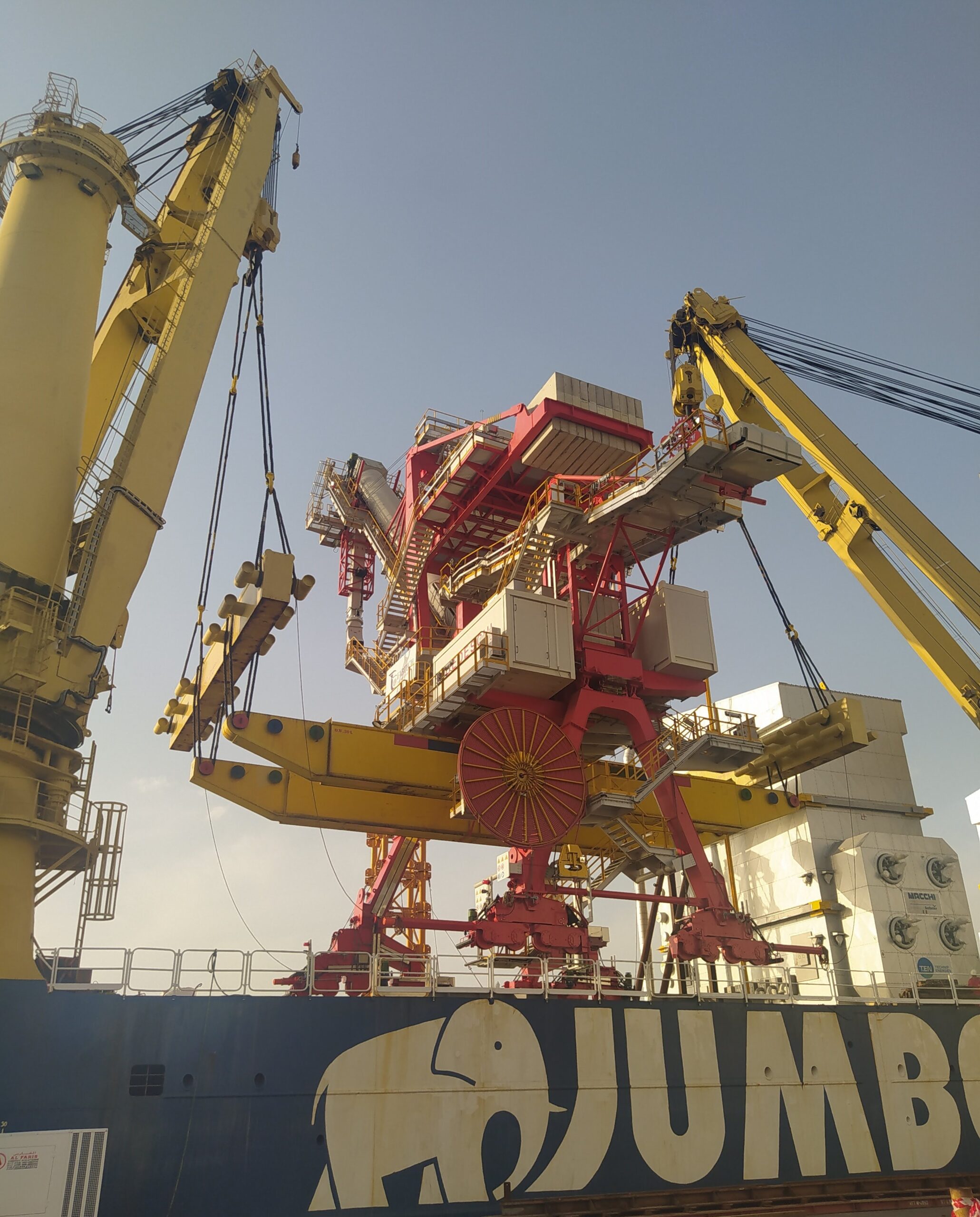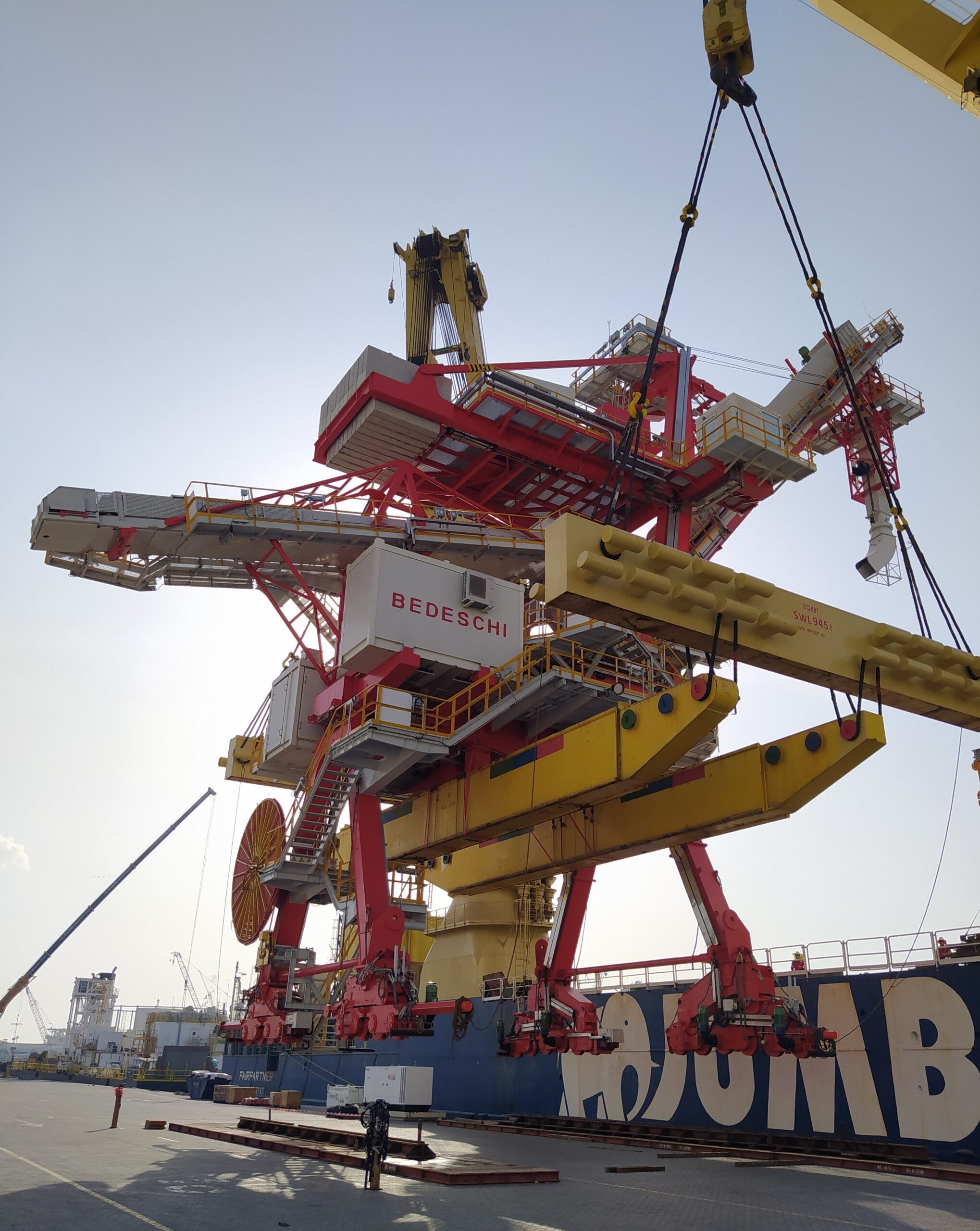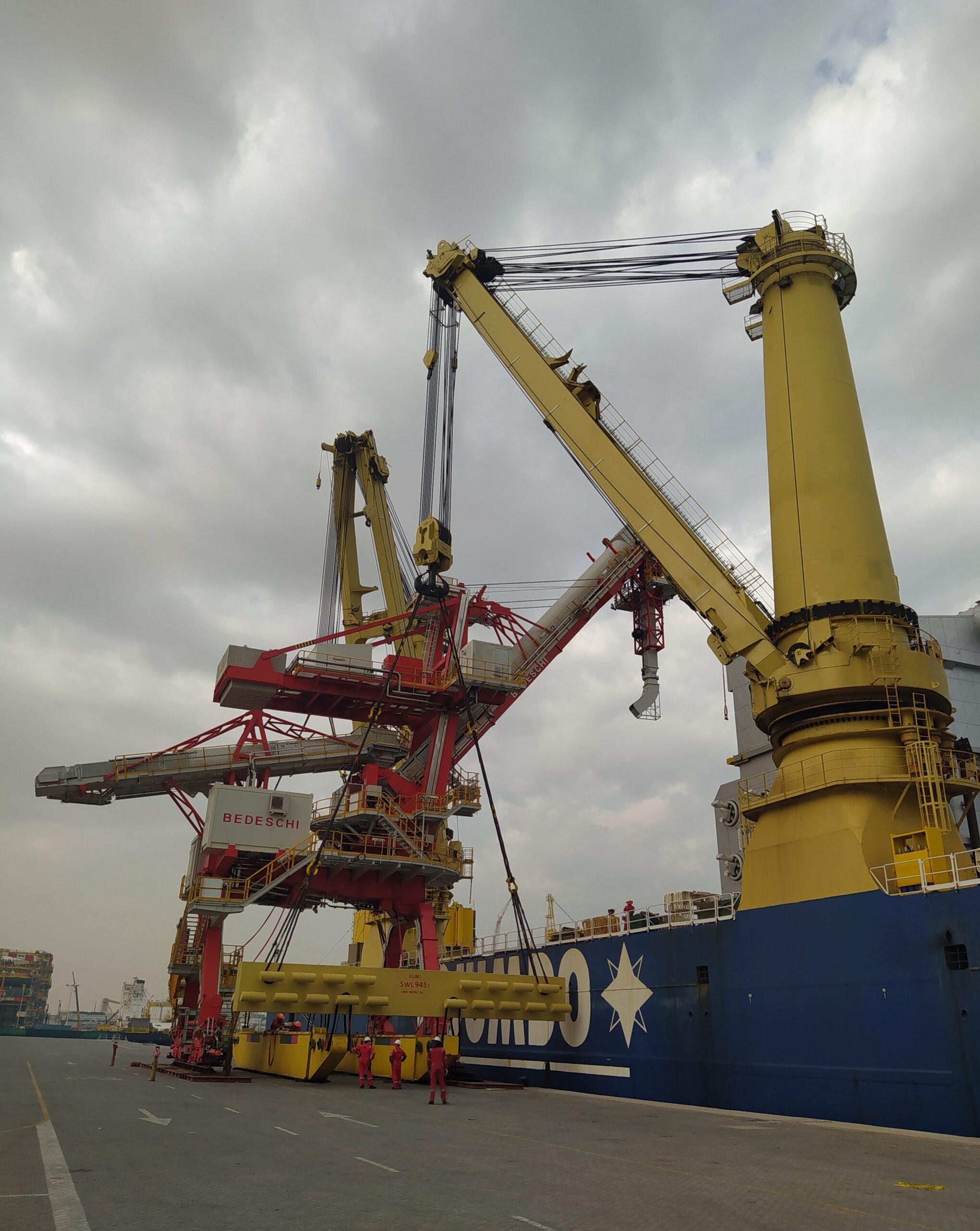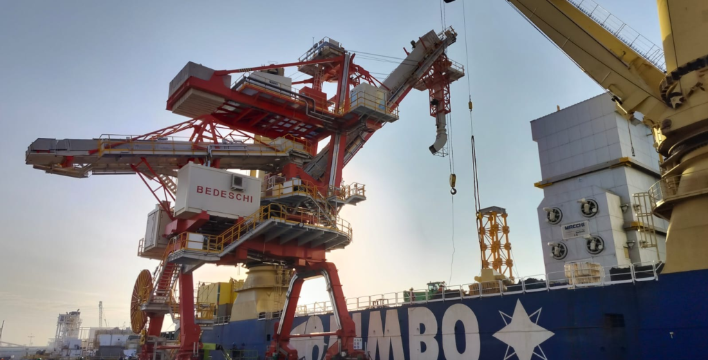 Exceptional loading operations of the shiploader for fertilizer and granulated urea that Bedeschi has manufactured, now ready to be moved to the discharge port to the client’s terminal.