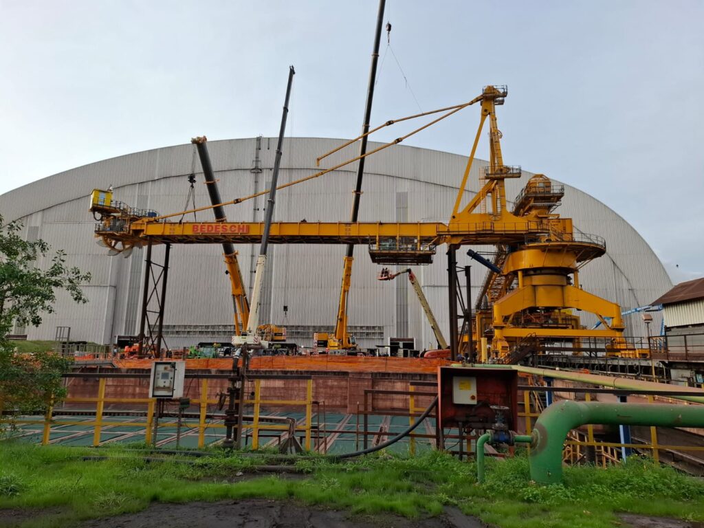 Site update: erection phase of the third bucket wheel stacker-reclaimer to Acciaierie D’Italia