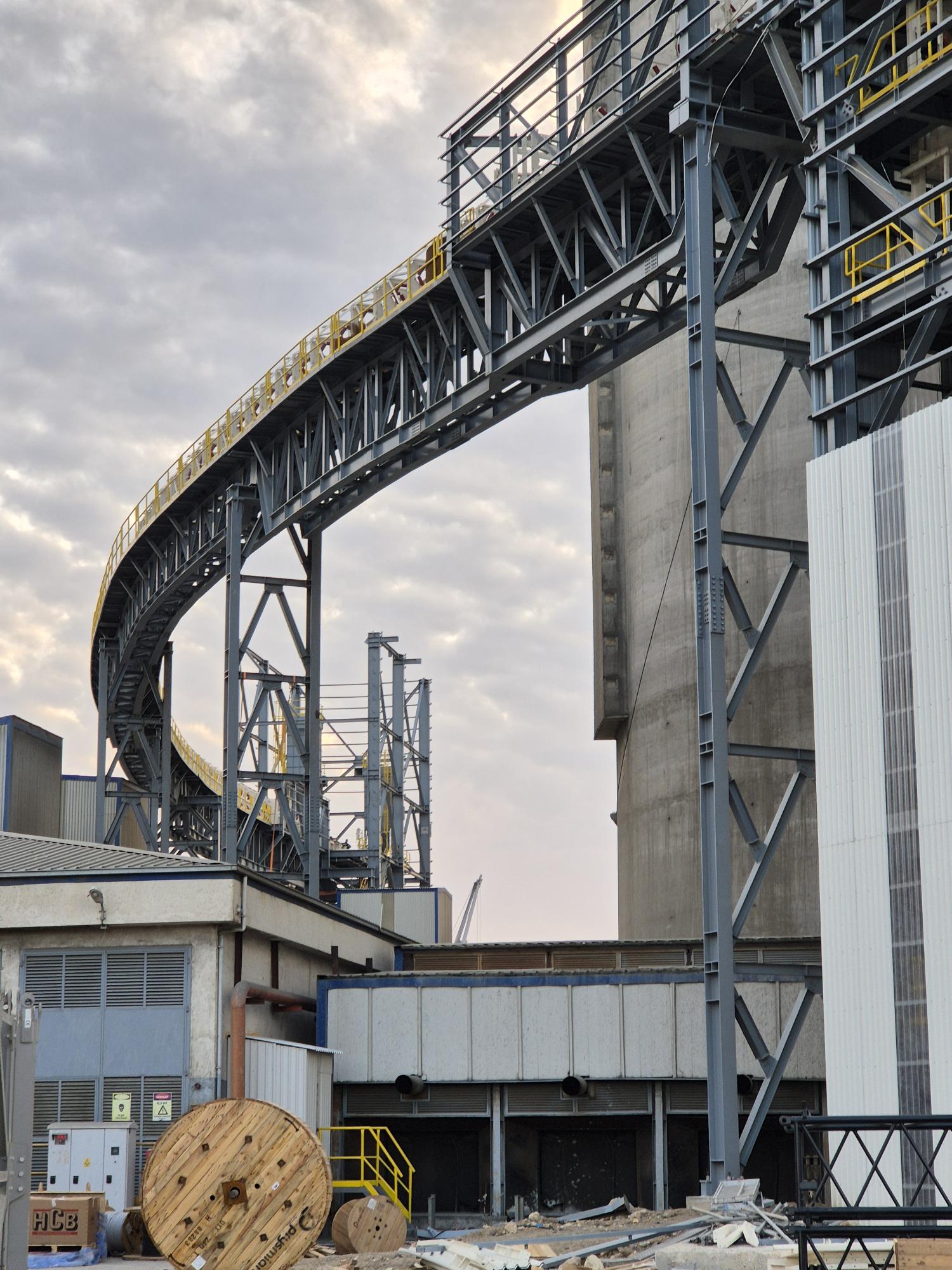Bedeschi Site Update: amazing pictures of the 4 lines of pipe conveyors that will have a total length of 1300 meters with a capacity of 1000 t/h for cement and 1350 t/h for clinker.