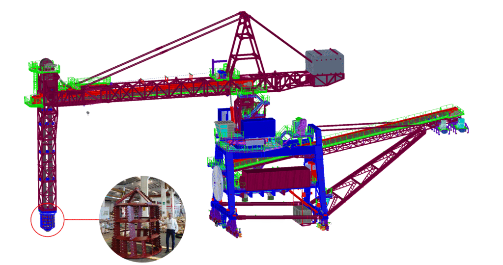 As shown in the picture, you can see just how large the cutter is and what part of the ship unloader it corresponds to.