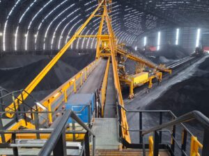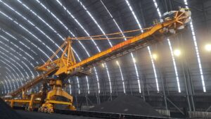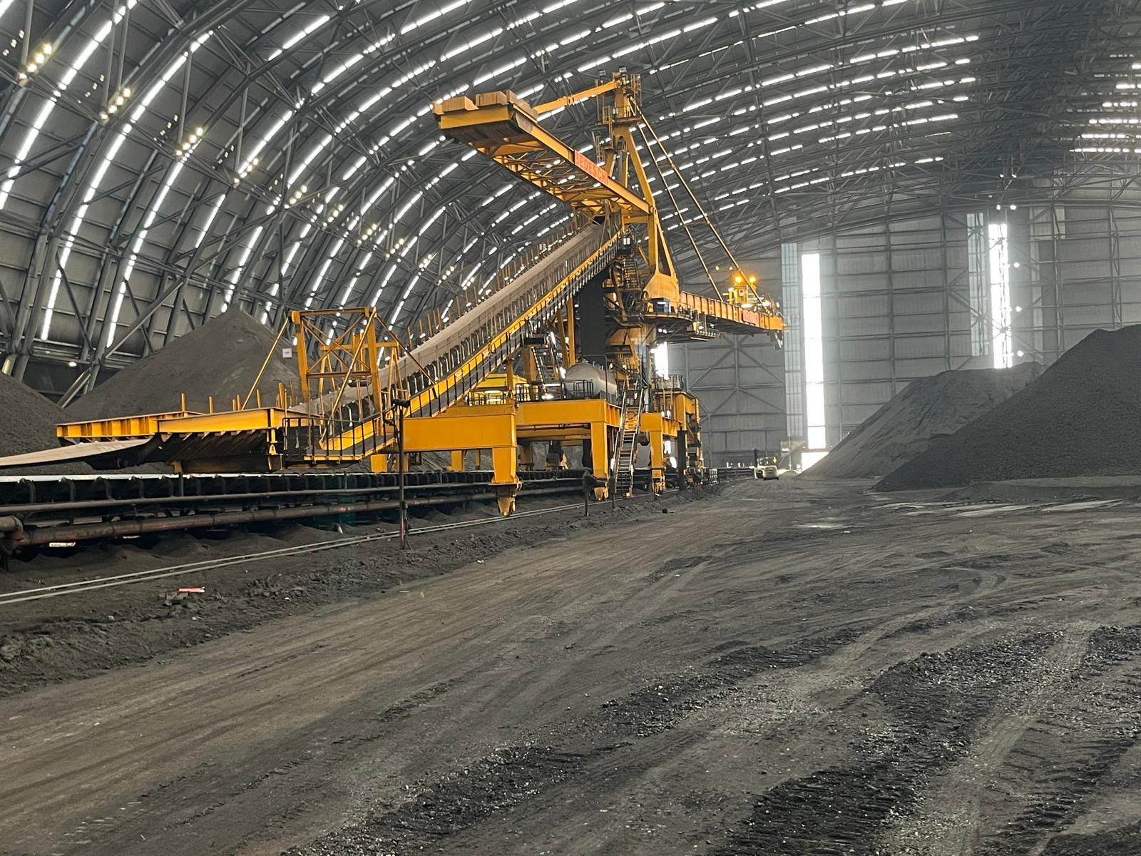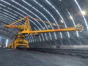 This machine has a capacity of 6,500 tons per hour (t/h) for coal and 4,300 t/h for coke in the stacking mode, and it can handle 1,600 t/h for coal and 900 t/h for coke in the reclaiming mode.